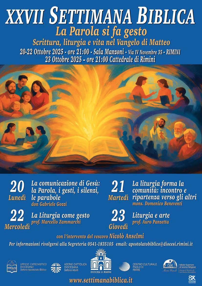 LUNEDI’ 20 OTTOBRE – Ore 21.00 presso Sala Manzoni da Lunedì 20 a Giovedì 23 “Settimana Biblica” per programma vedere Locandina QUI