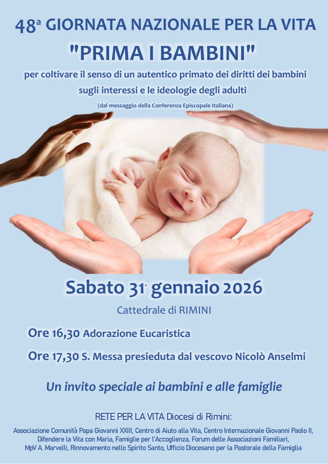 VENERDI’ 30 GENNAIO – Ore 17.00-19.30 Via Stampa – Ore 17.30-18.30 Presso la Chiesa della Mater Misericordiae Adorazione Eucaristica; durante l’Adorazione recita del Rosario ; Ore 18.30 Messa – Ore 20.45 presso Regina Pacis Incontro di formazione per Educatori Zona Pastorale Rimini Centro.