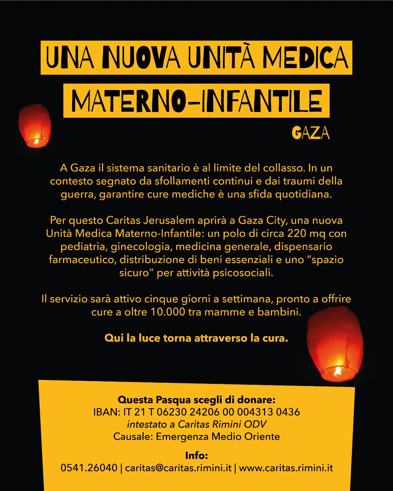 • Come Caritas Parrocchiale, per la Quaresima, promuoviamo un’iniziativa accolta dalla Caritas Diocesana per finanziare l’apertura di una nuova unità medica materno-infantile a Gaza City, dove saranno presenti pediatria, ginecologia, medicina generale, dispensario farmaceutico ecc… (volantino dettagliato qui). La raccolta delle offerte destinate a questa iniziativa sarà Domenica 8 Marzo