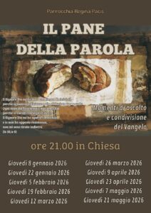 - Avvisi della settimana dal 7 Dicembre – Regina Pacisdi Luisa RinaldiMartedì 9 alle ore 21,00 su Whatsapp “Luce della Parola” Giovedì 11 alle ore 21,00 in Sacrestia “Il Pane della… Leggi tutto: Avvisi della settimana dal 7 Dicembre – Regina Pacis